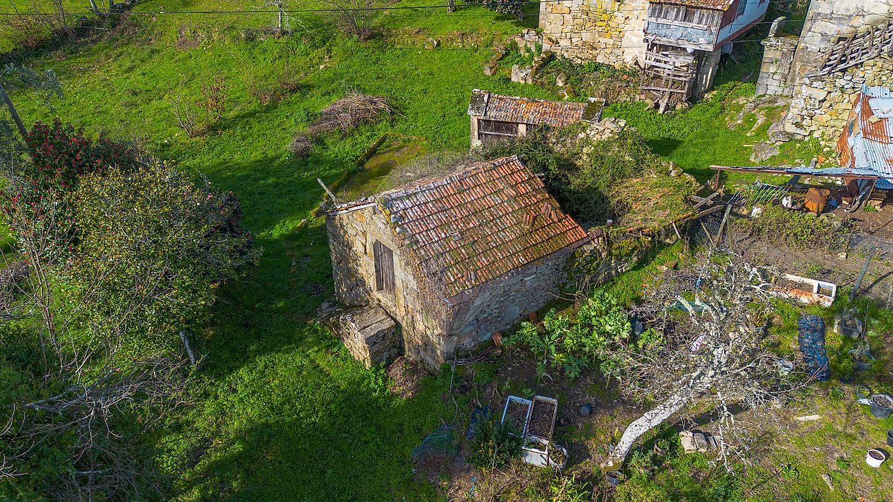 O imóvel inclui construções em pedra de traça tradicional, com uma área construida de 190m², onde se destacam um edifício principal de grande dimensão e um antigo apoio agrícola, que preserva elementos rústicos autênticos da região.