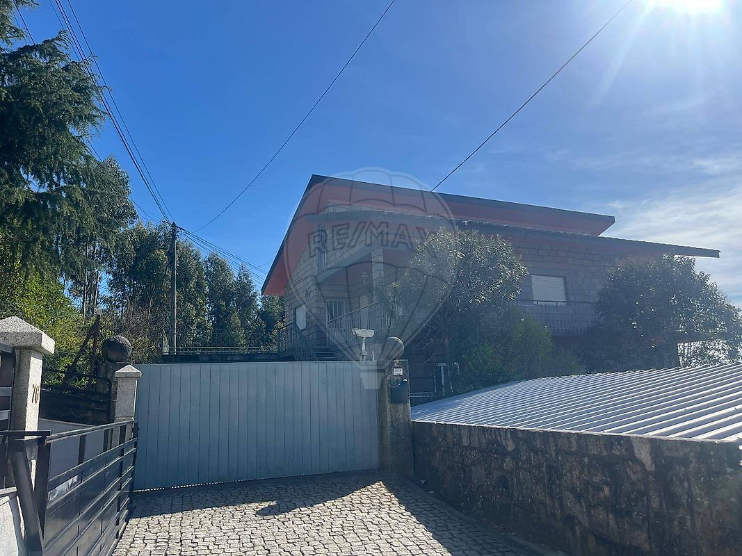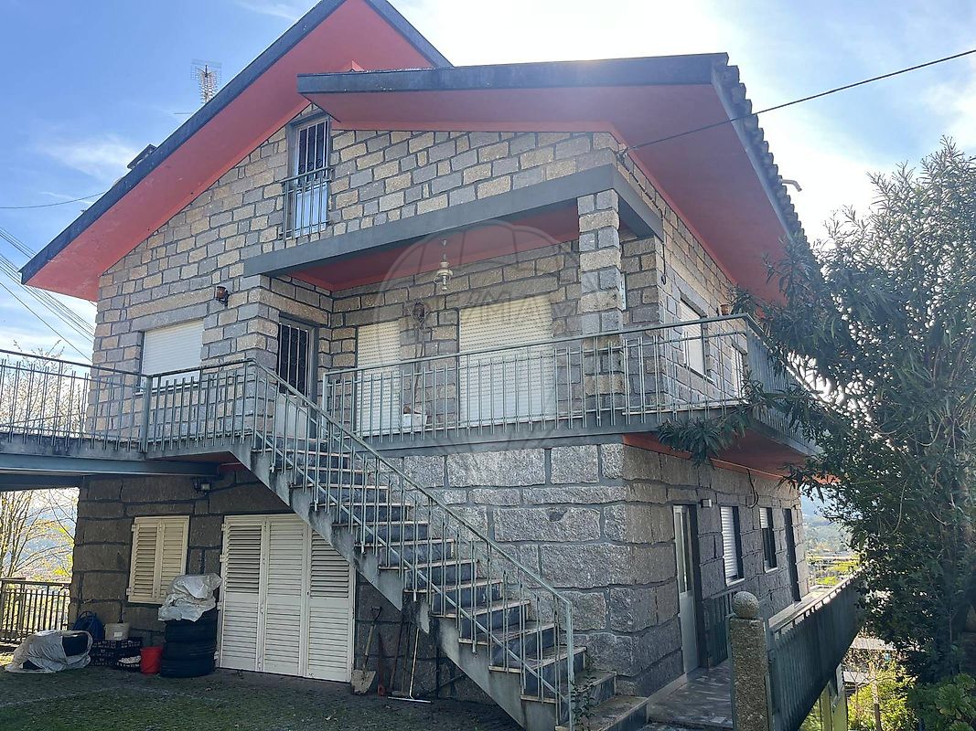 Moradia em granito, de 3 pisos, inserida num lote de 1120m2.
