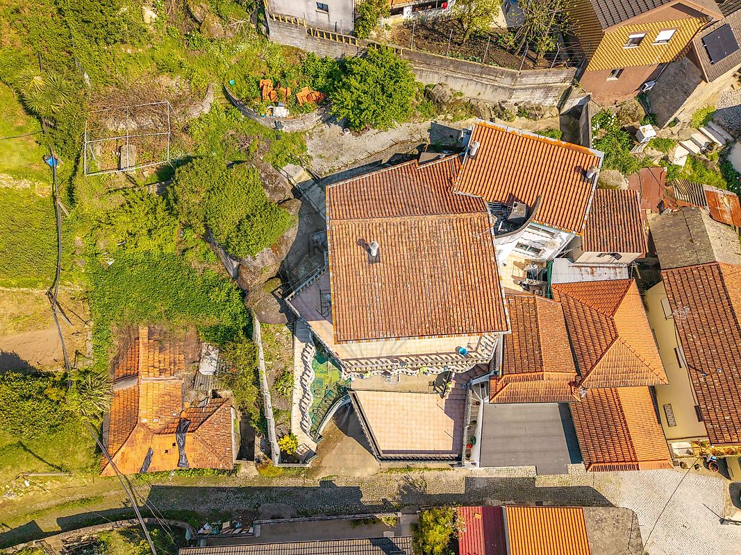 O espaço exterior, com uma excelente área de terreno, abre diversas possibilidades: jardim, zona de lazer, piscina ou até cultivo.